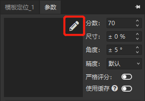 分?jǐn)?shù):對匹配到的模板相似度進(jìn)行評判,分?jǐn)?shù)越高,匹配相似度的要求越高; 尺寸:可匹配的模板尺寸范圍,例如±50%,就是模板的50%~150%大小范圍內(nèi)進(jìn)行匹配; 角度:可匹配的模板角度范圍,例如±180°,就是360°任意方向進(jìn)行匹配;; 精度:根據(jù)精度及速度的要求,用戶可以選擇從粗略到高的五個(gè)等級; 嚴(yán)格評分:是否對在評分中考慮丟失、遮擋或模糊的特征; 使用緩存:加速算法的執(zhí)行速度,但是會占用額外的內(nèi)存; 全圖檢測:用戶點(diǎn)擊如下圖所示的中ROI最大化按鈕即可。