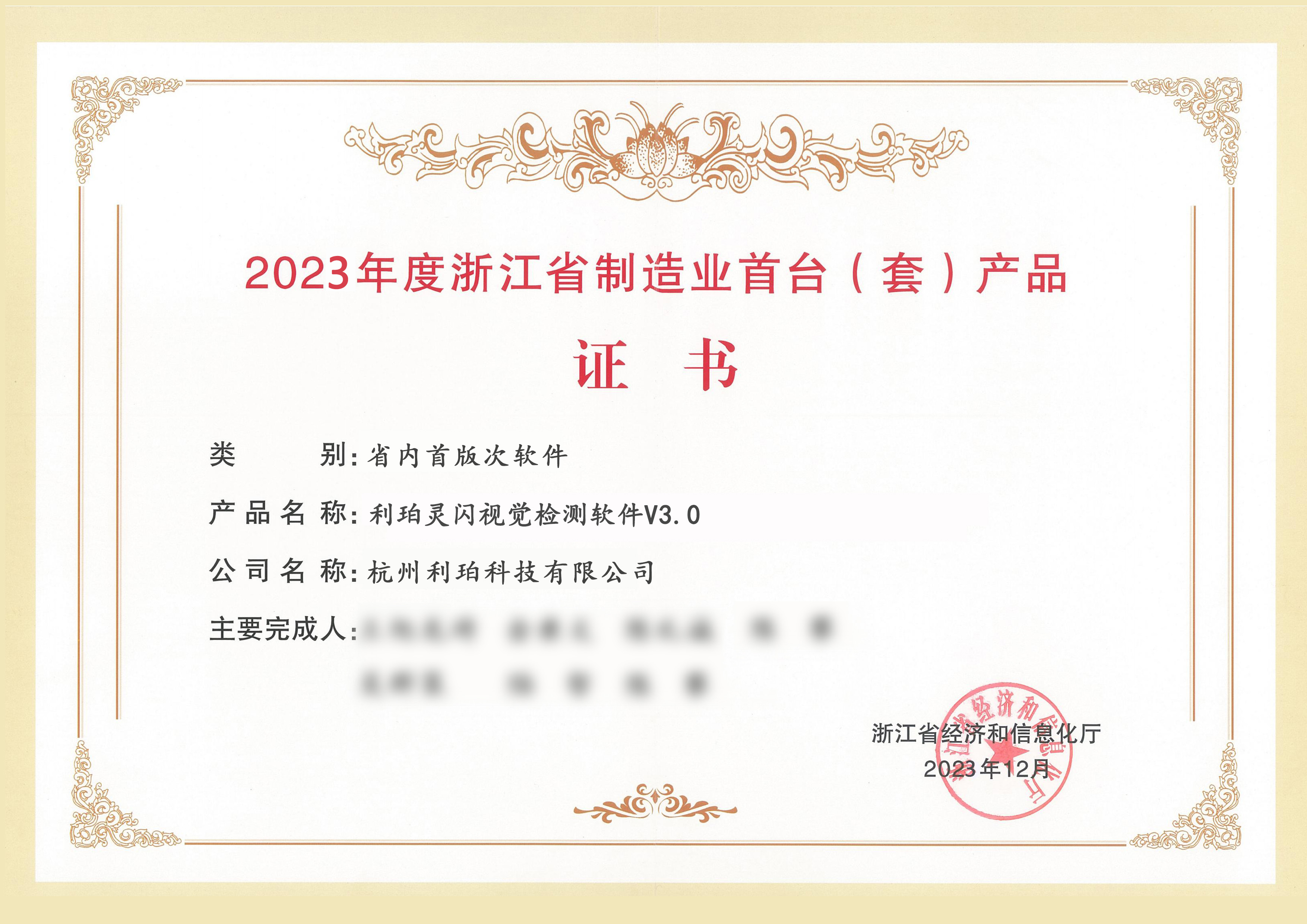 2023年度浙江省制造業(yè)首臺(套)產(chǎn)品證書