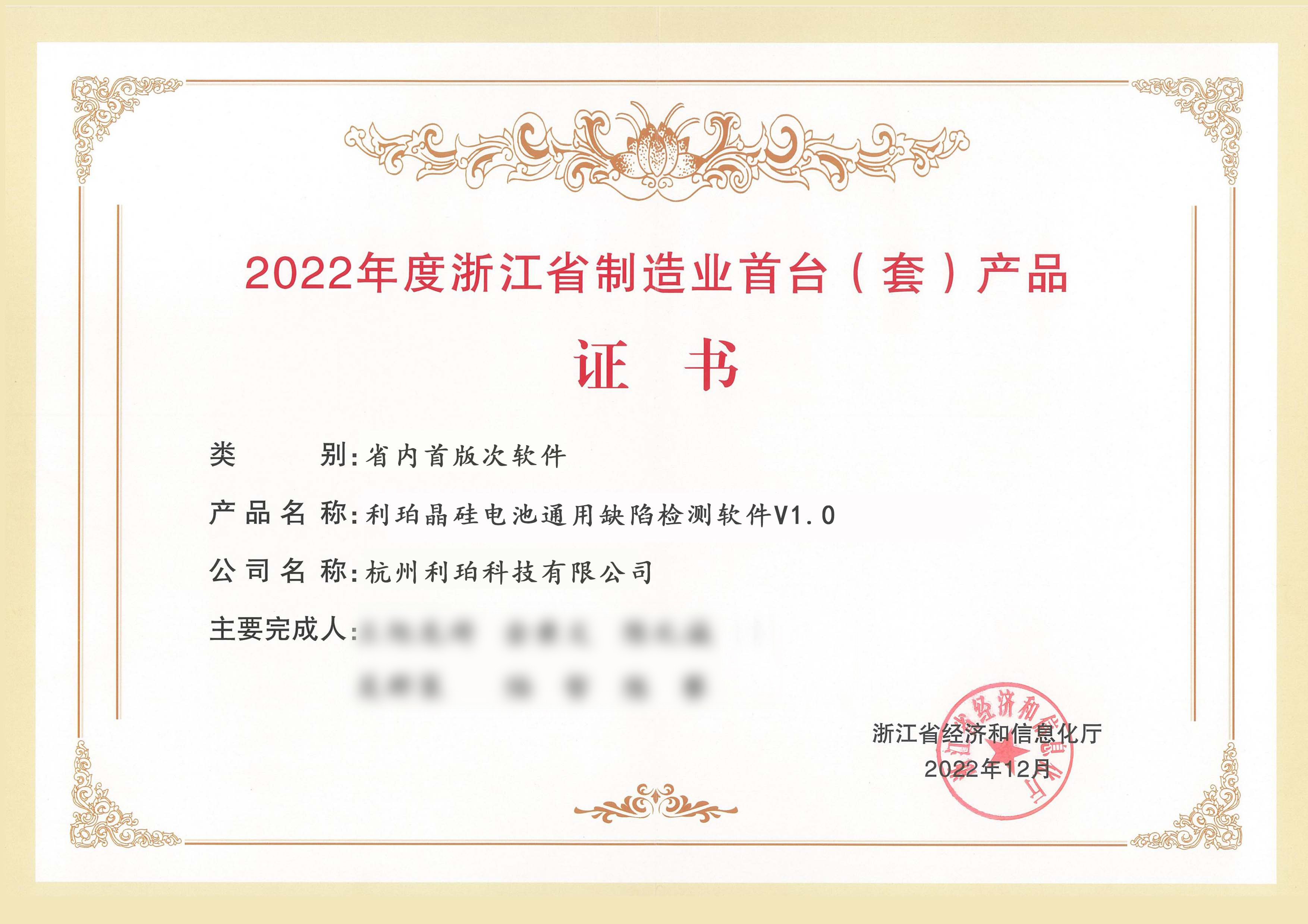 2022年度浙江省制造業(yè)首臺(套)產(chǎn)品證書