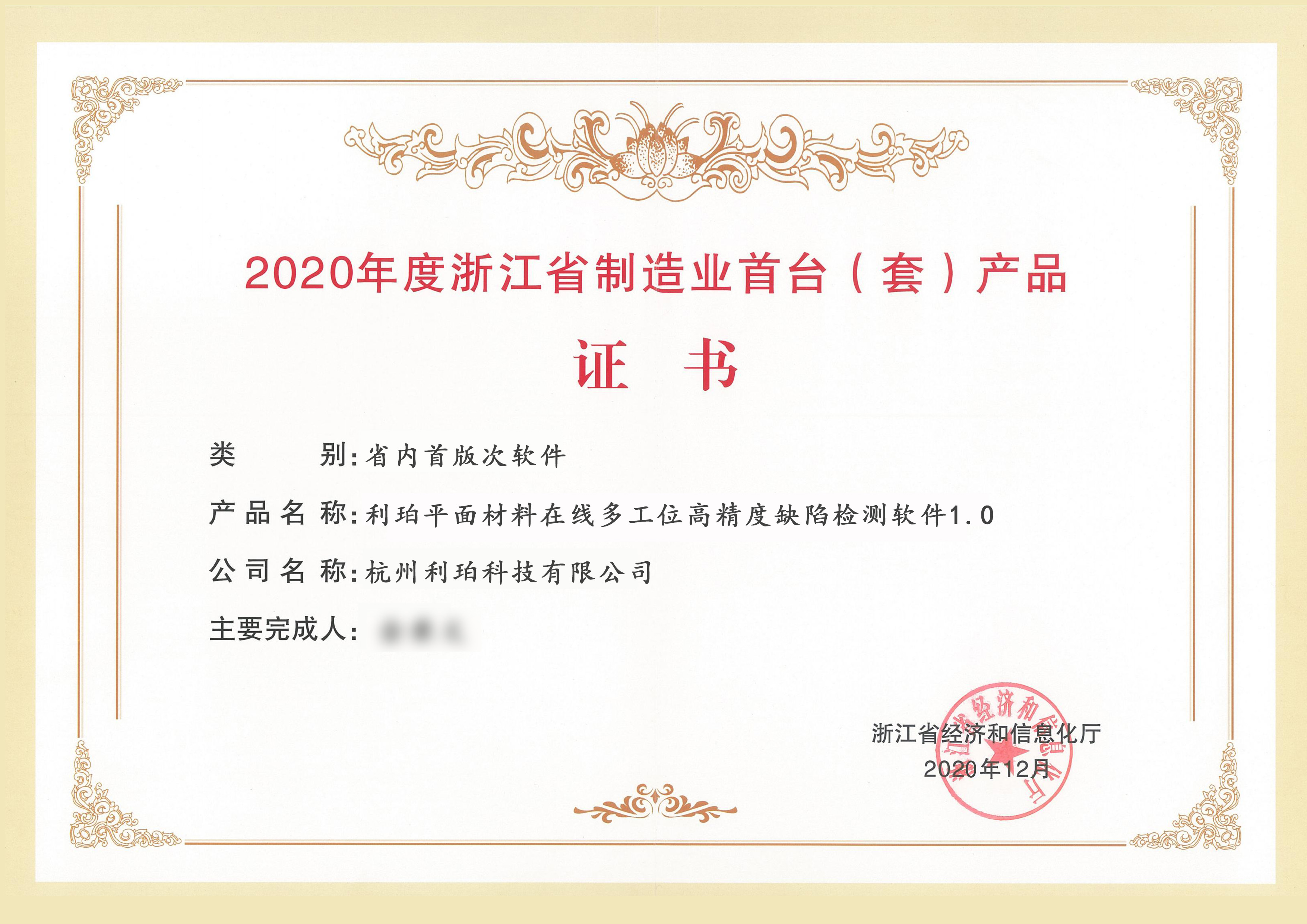 2020年度浙江省制造業(yè)首臺(套)產(chǎn)品證書-省內(nèi)首版次軟件...