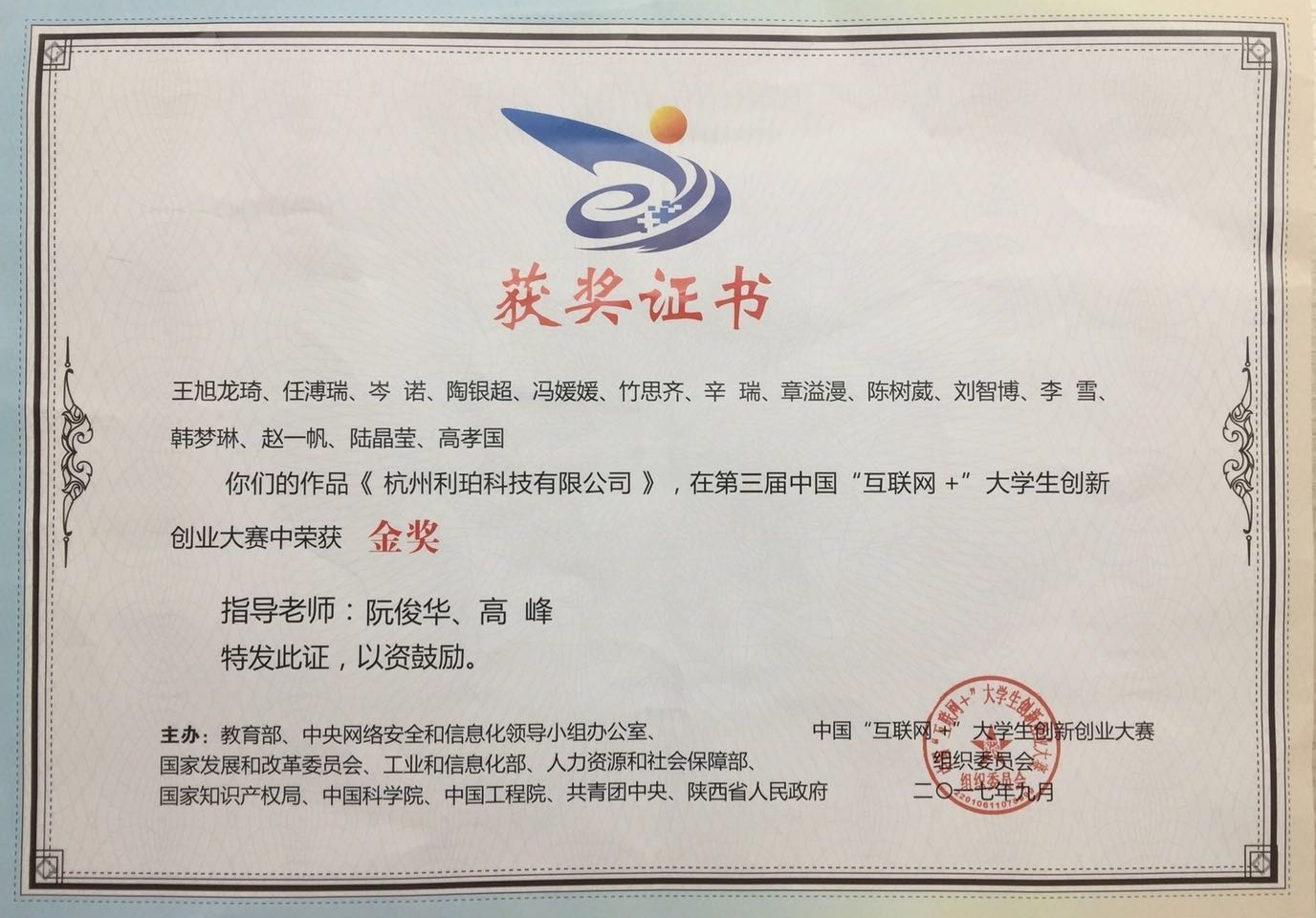 中國“互聯(lián)網+”大學生創(chuàng)新創(chuàng)業(yè)大賽金獎