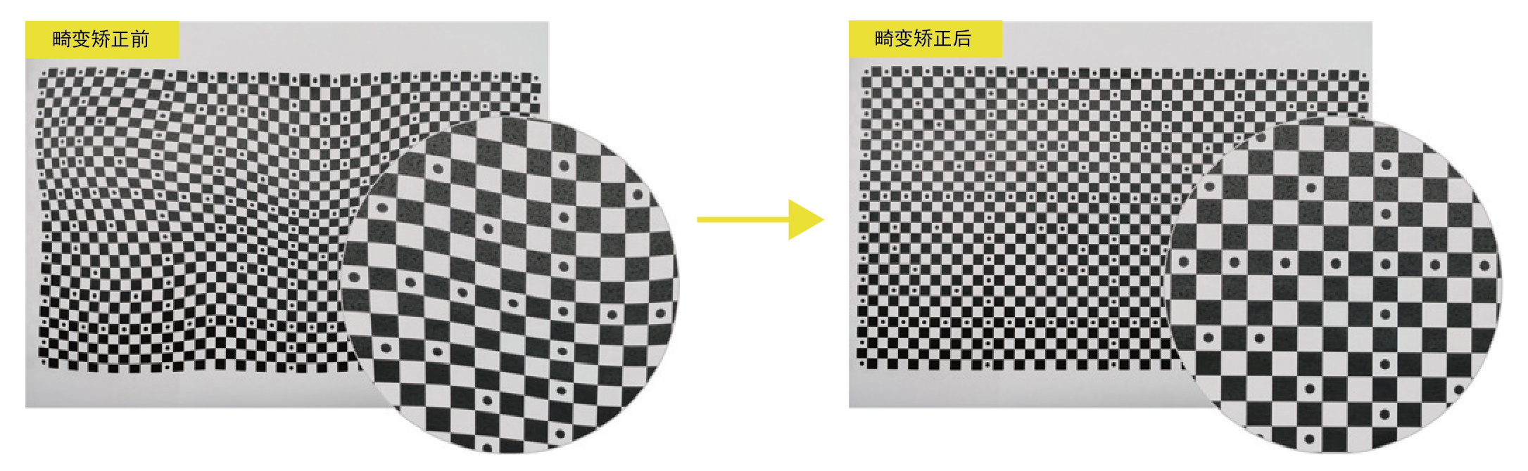 針對多鏡片的復雜光學系統(tǒng)的畸變,開發(fā)了 FFD 標定算法,適用于所有的畸變校正場景。