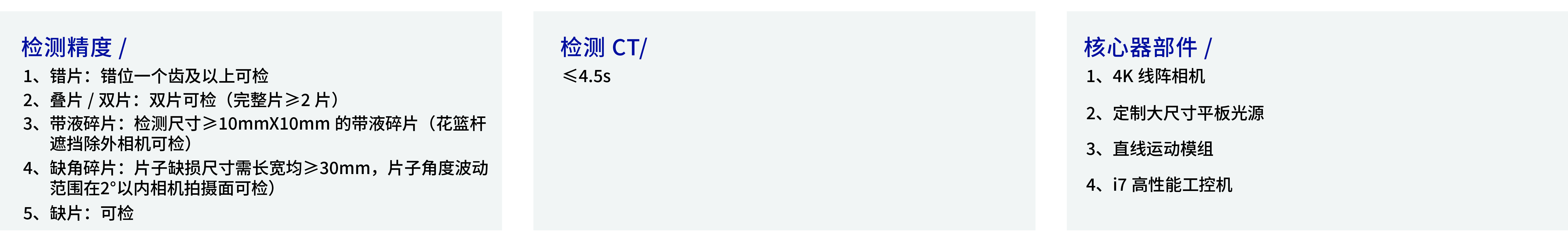 主要用于刻蝕下料處對(duì)花籃檢測(cè)可視范圍內(nèi)的碎片、疊片、錯(cuò)片、缺片、無(wú)花籃、插片不齊、漏拋